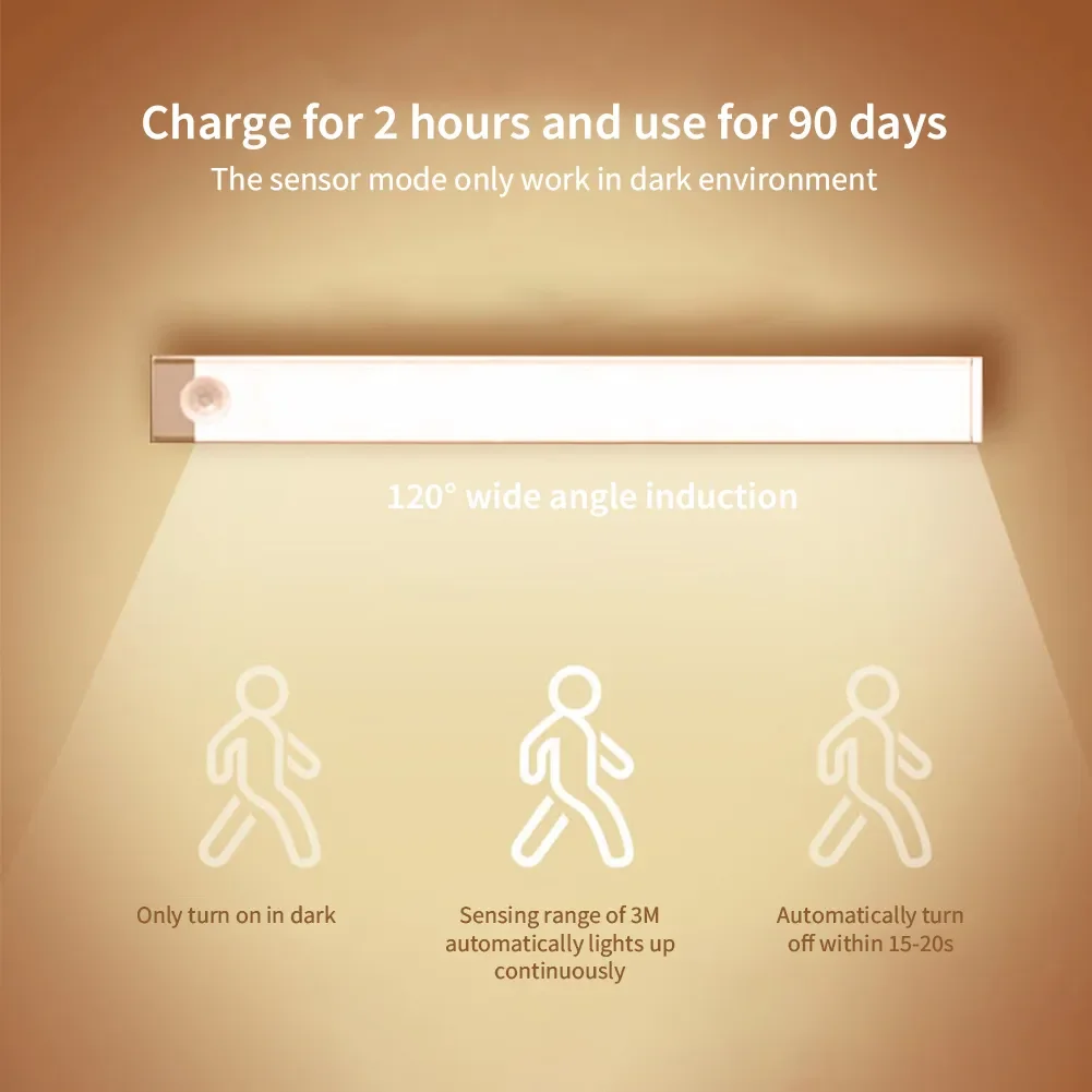 Night Light USB Charging Magnetic Induction Lamp Dimmable LED Under Cabinet Light Motion Sensor for Bedside Wardrobe Stairway