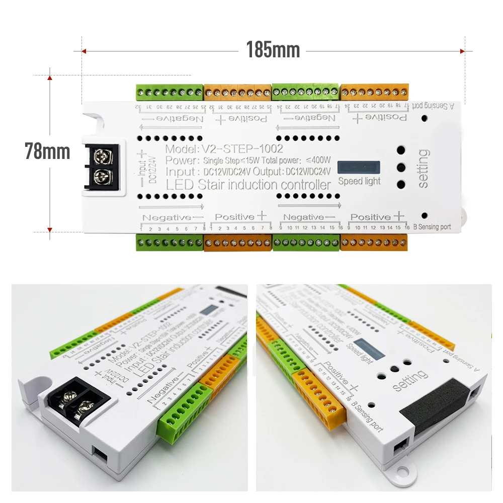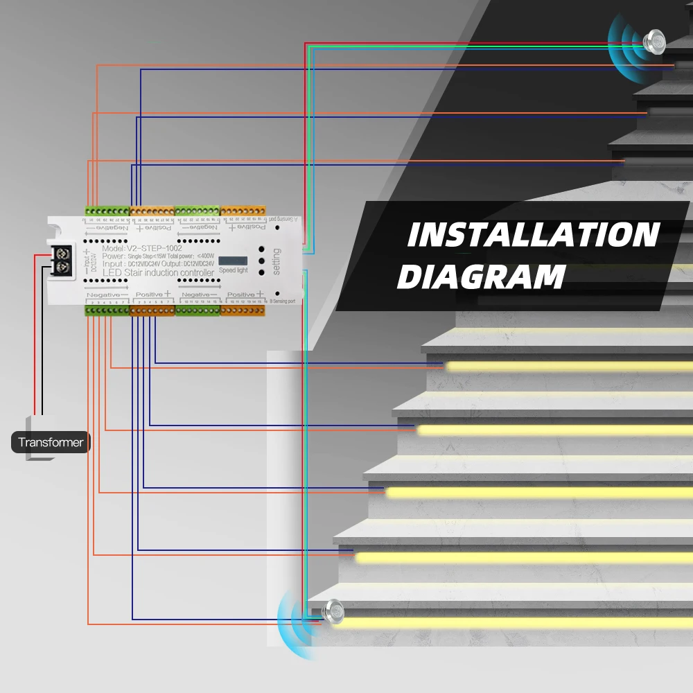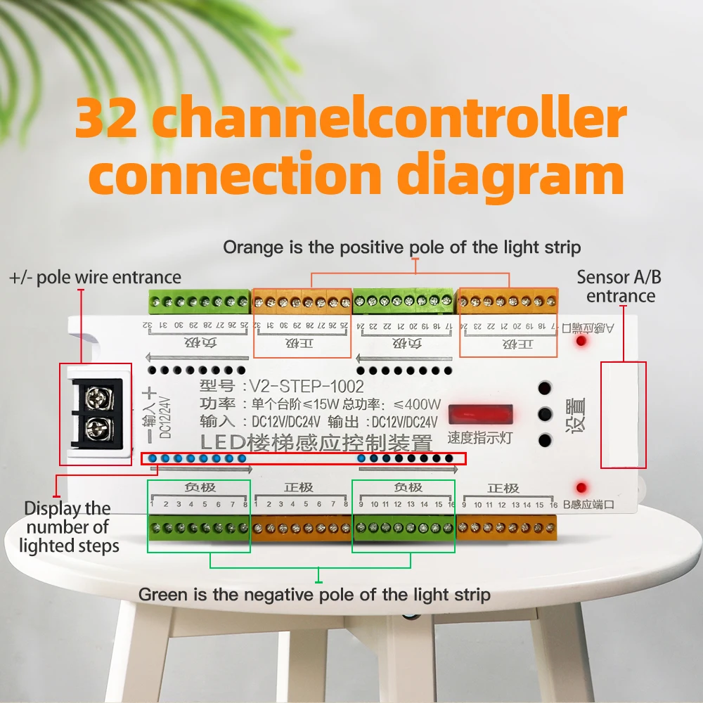 32 Channel LED Controller with PIR Motion Sensor for Control Each Stair Light,Indoor Motion Night light DC12V & 24V Flexible LED Strip for The Stair